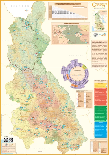 El "Mapa de los recursos y servicios turísticos de Cajamarca" es un cajón lleno de sorpresas que te acercará a este departamento del Perú, aunque no lo conozcas ni vivas en él. Un mapa no es solamente una representación aproximada del territorio. Es una experiencia "virtual" con ese espacio representado. Con el mapa podrás imaginar y soñar, te emocionarás al descubrir en él, cuántos y qué valiosos son los recursos y el patrimonio turístico de Cajamarca y el Perú. Te sentirás responsable y defenderás su protección y puesta en valor. Te volverás un guardián del turismo sostenible en el Perú